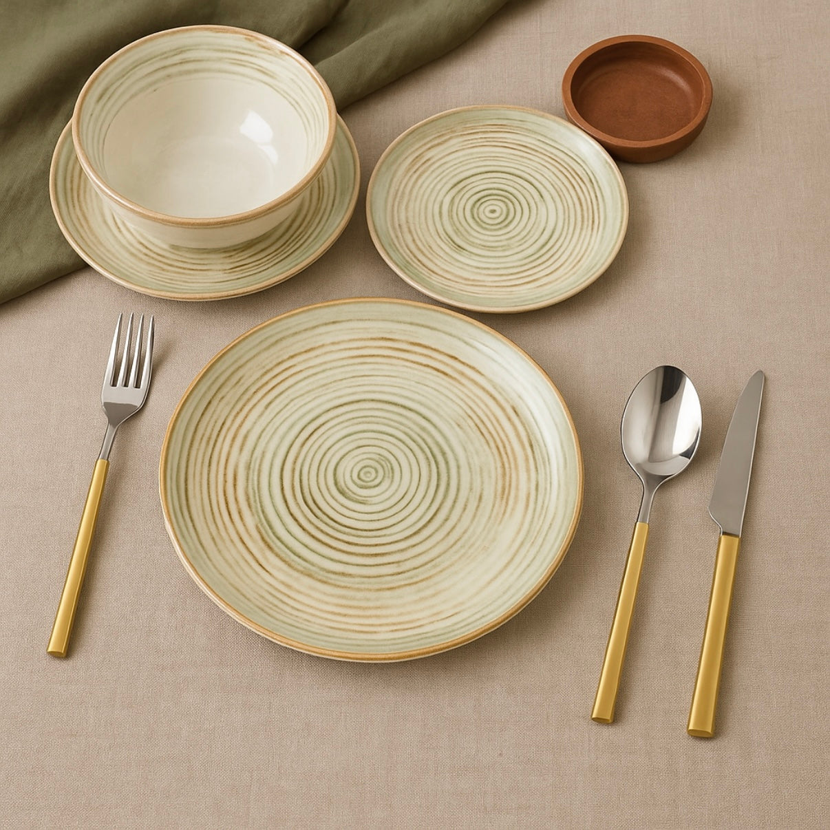 Serviciu de masă porțelan Verde Spiralat – 24 piese 6 persoane, farfurii + boluri 05 N
