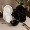 Serviciu de masa termorezistent opal 19 piese, farfurii rotunde alb si negru Pukka