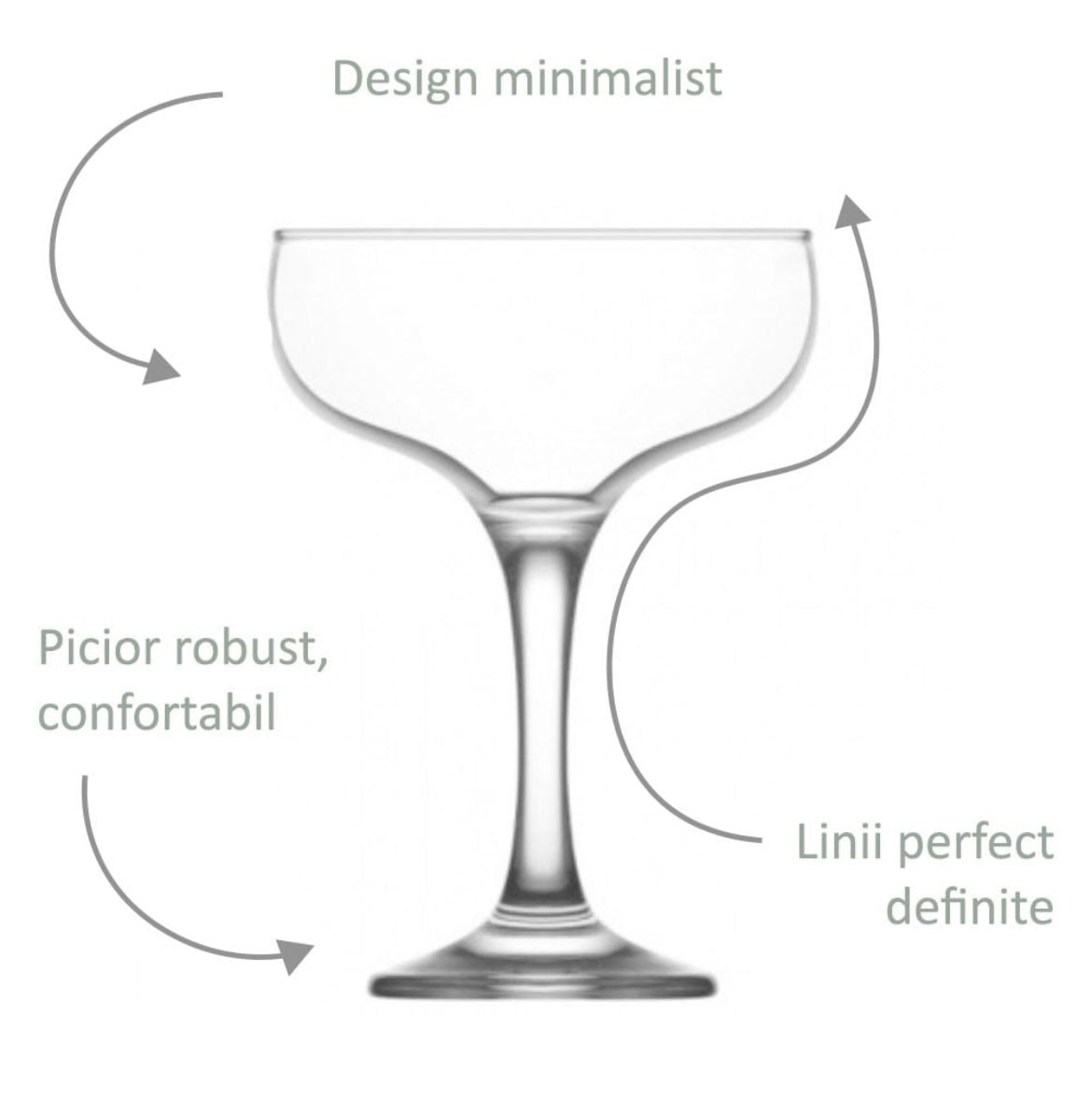 Acestea pahare versatile sunt ideale pentru servirea cocktailurilor, vinului spumant sau a deserturilor lichide adaugând sau nota de eleganță oricărei ocazii.