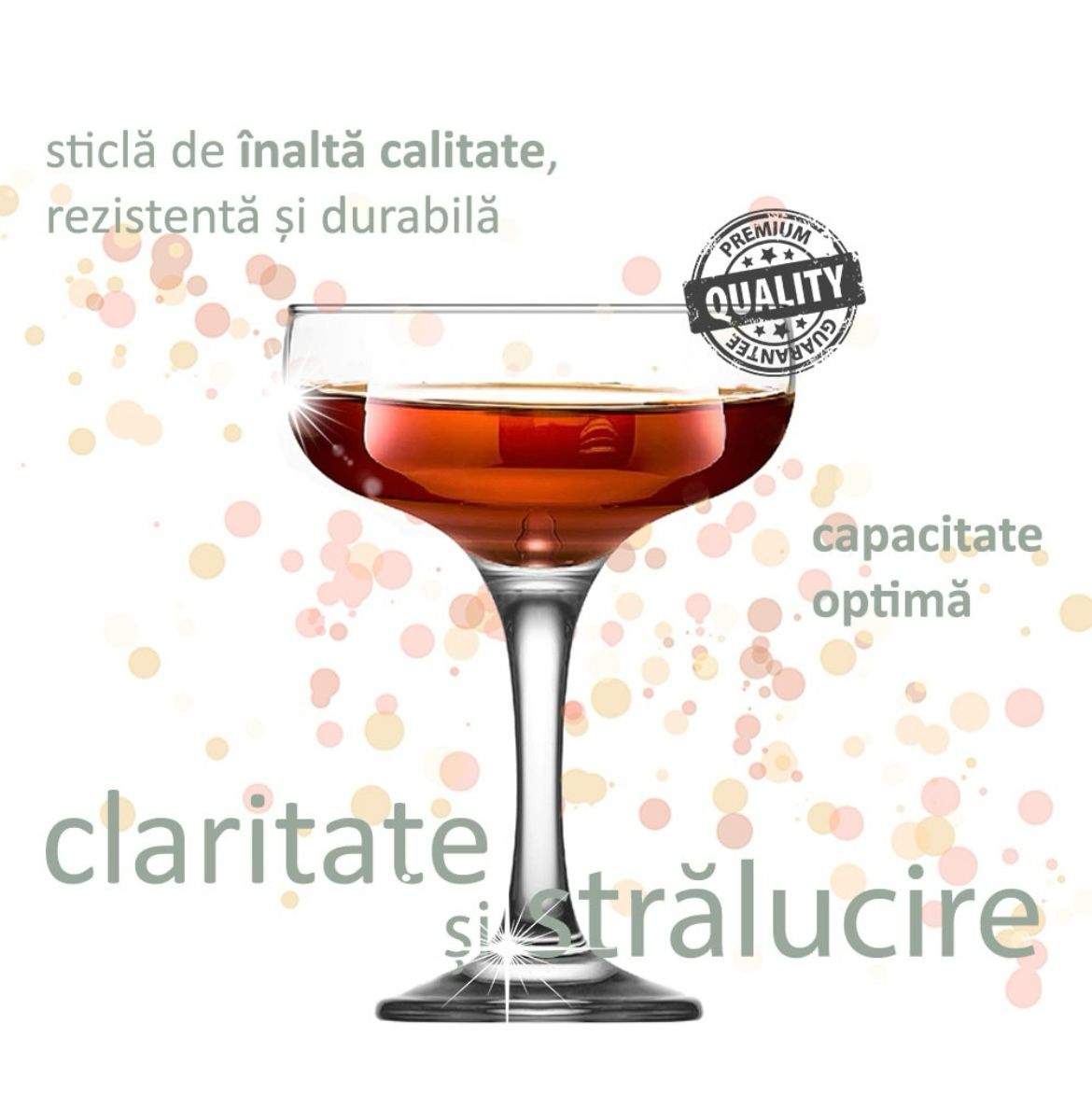 - Versatilitate Pot fi folosit pentru a servi cocktailuri, vin spumant șampanie, deserturi sau alte băuturi speciale, oferind flexibilitate în utilizare