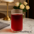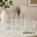 Realizate din sticlă rezistentă, cu design modern și striații verticale fine, paharele sunt ideale pentru servirea apei, sucurilor, cocktailurilor sau băuturilor răcoritoare