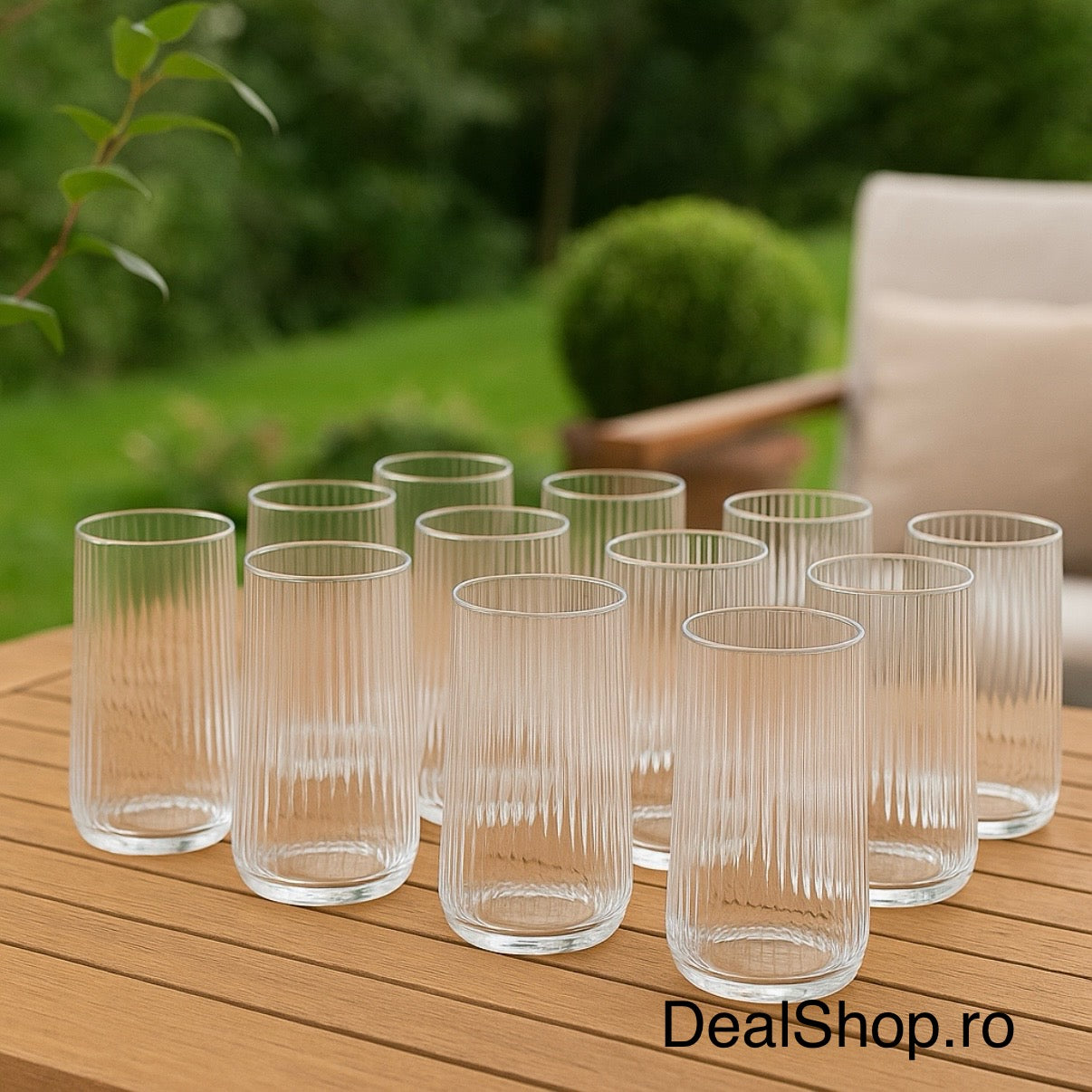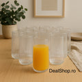 Set 12 Pahare din Sticla Transparentă cu Striatii 400 ml Design Modern și Elegant