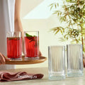 Cu o capacitate de 300 ml și un design modern cu linii verticale gravate, aceste pahare oferă un aspect sofisticat și o priză confortabilă