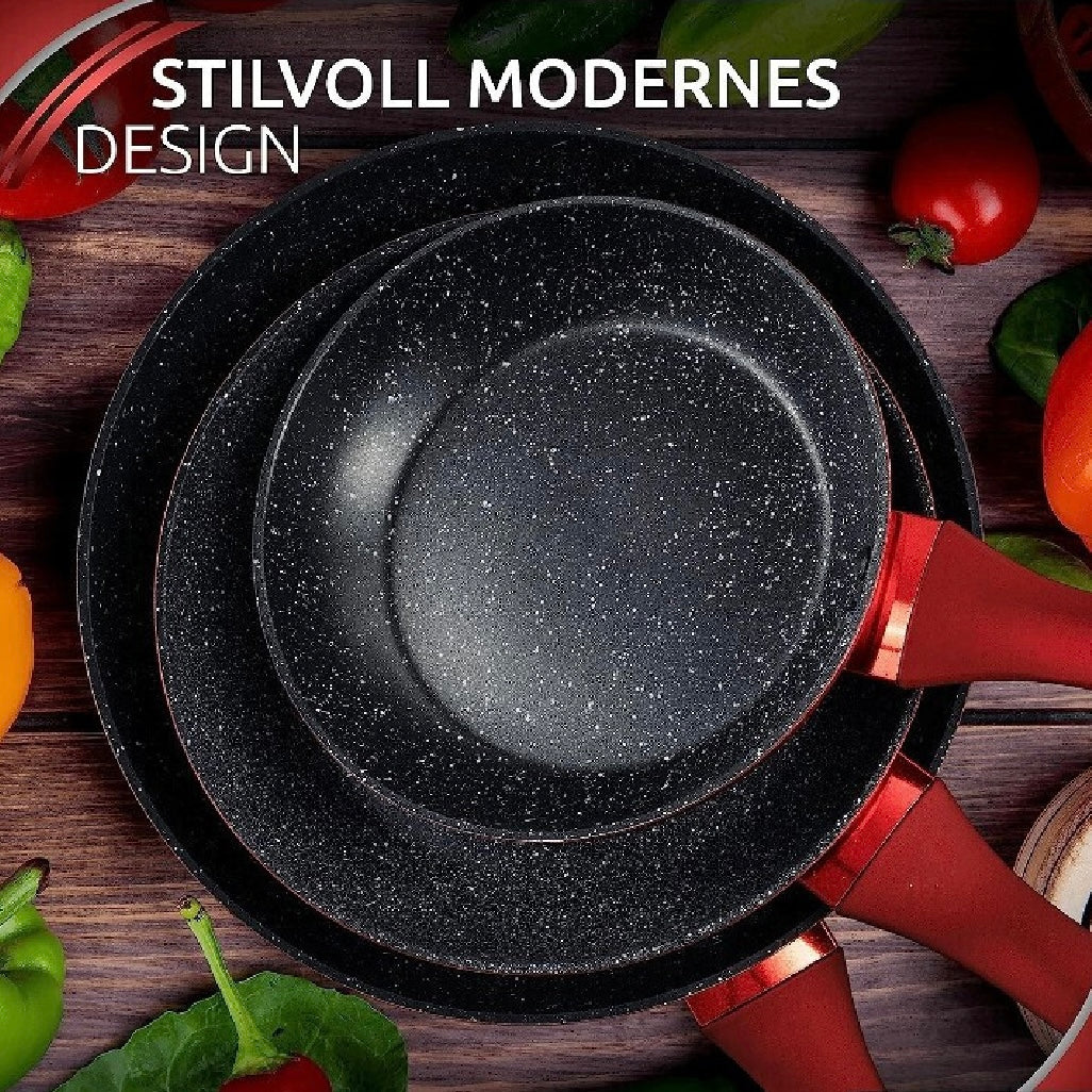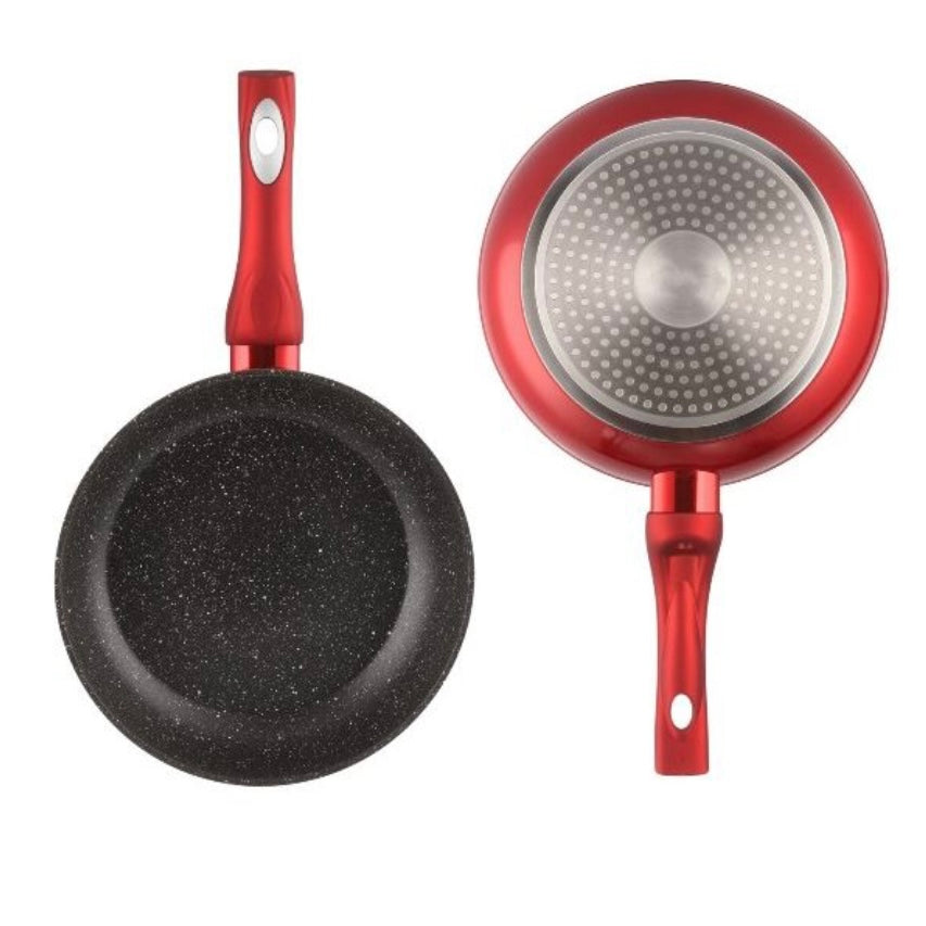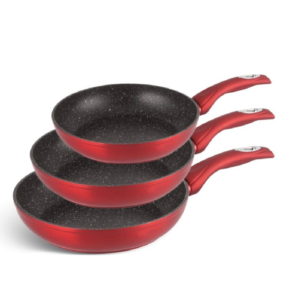 Set 3 Tigăi cu Înveliș din Marmură Royalty Line Red– Diametru 20 cm, 24 cm și 28 cm Antiaderente pentru Gatit Sănatos și Uniform