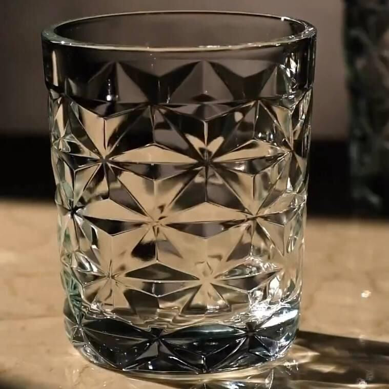 Set 4 Pahare Estrella 305 ml – Sticlă groasă cu design geometric elegant, ideale pentru whisky, apă sau cocktailuri