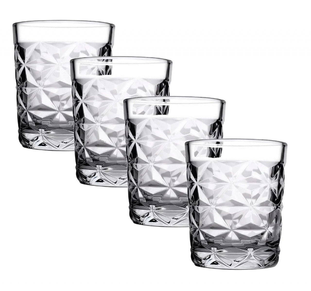 Setul de 4 pahare Estrella 305 ml impresionează prin designul său rafinat, cu model geometric în relief ce reflectă lumina spectaculos