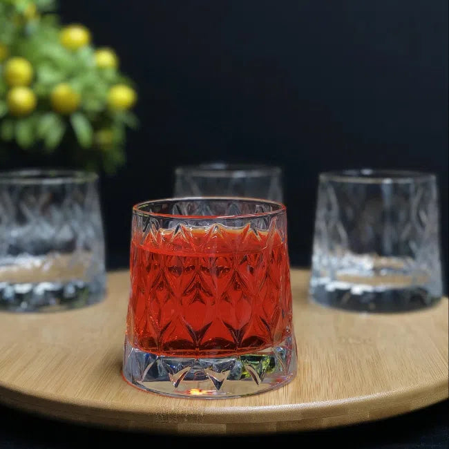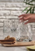 Set 4 pahare Leafy, 320 ml sticla groasa transparenta design elegant cu model în relief pentru whisky sau cocktailuri