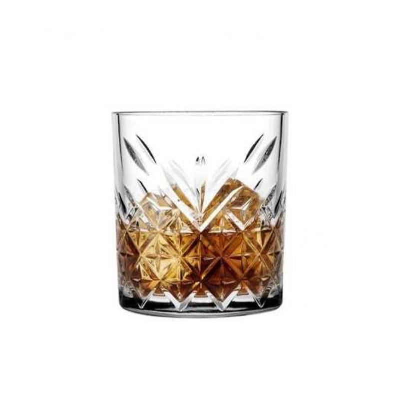 Set 4 Pahare Timeless 205 ml Sticlă groasă transparentă design clasic gravat, pentru whisky, apă sau cocktailuri