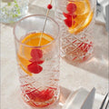 Realizate din sticlă groasă de înaltă calitate, cu un design gravat tip diamant, aceste pahare oferă un aspect sofisticat și o strălucire aparte, fiind potrivite pentru apă, sucuri, whisky, cocktailuri sau cafea cu gheață
