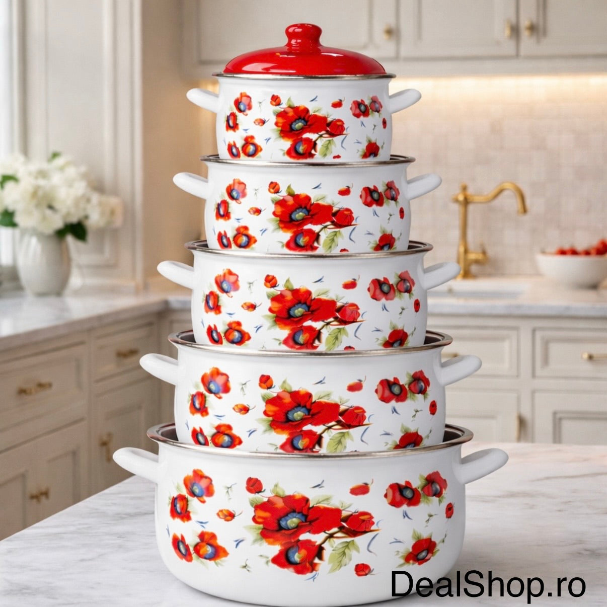 Cu Setul de 5 oale emailate cu capac Arian de la DealShop.ro , nu doar vei adăuga un element de eleganță bucătăriei tale, ci și vei beneficia de performanță și durabilitate în timp
