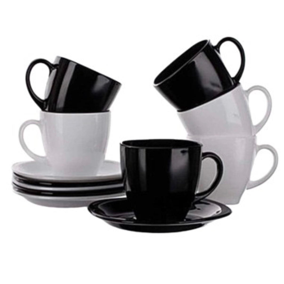 Set 6 cești cafea cu farfurii opal termorezistent 245 ml 3 albe + 3 negre