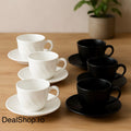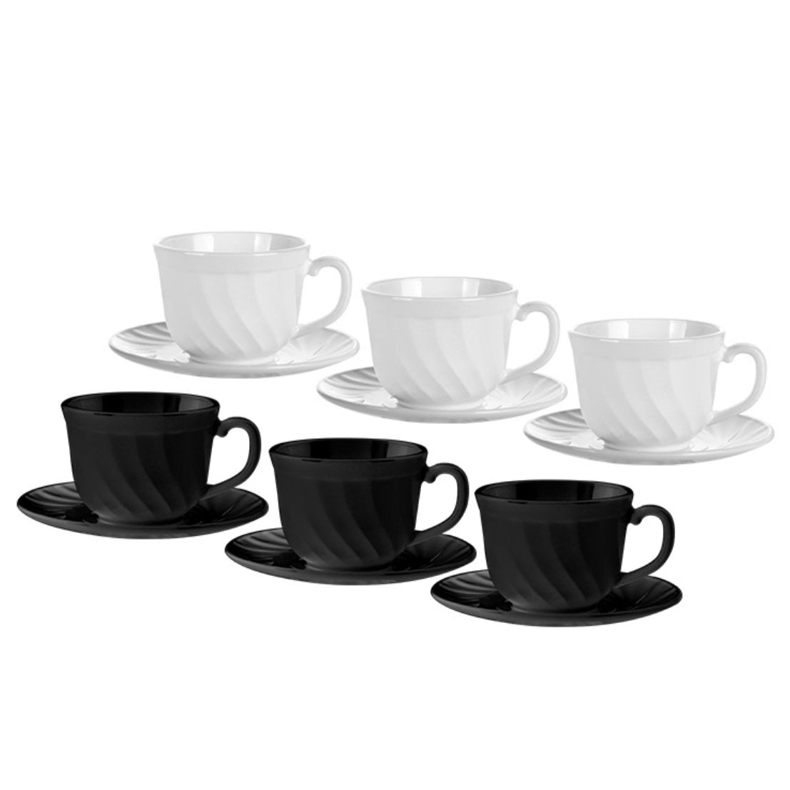 Set 6 Cești Cafea Opal 190 ml cu Farfurioare – Model Ondulat Alb & Negru