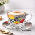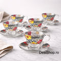 Setul Galaxy este compus din 6 cești din sticlă cu capacitate de 200 ml, fiecare însoțită de farfurioară asortată, fiind ideal pentru servirea cafelei, cappuccino-ului sau ceaiului. Designul floral vibrant oferă un plus de eleganță și personalitate, transformând fiecare moment de servire într-o experiență plăcută.