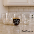 📦 Conținut pachet: 6 cești termoizolante din sticlă cu pereți dubli, model Coffee Best, 250 ml fiecare.