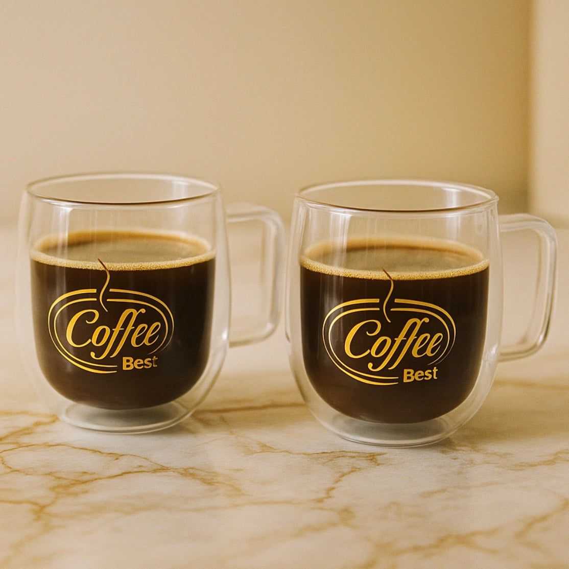 Fabricate din sticlă borosilicată transparentă, aceste cești oferă o izolare excelentă pentru băuturi calde sau reci, păstrând temperatura ideală mai mult timp. Designul rafinat, cu inscripția aurie Coffee Best, adaugă o notă sofisticată fiecărei pauze de cafea.