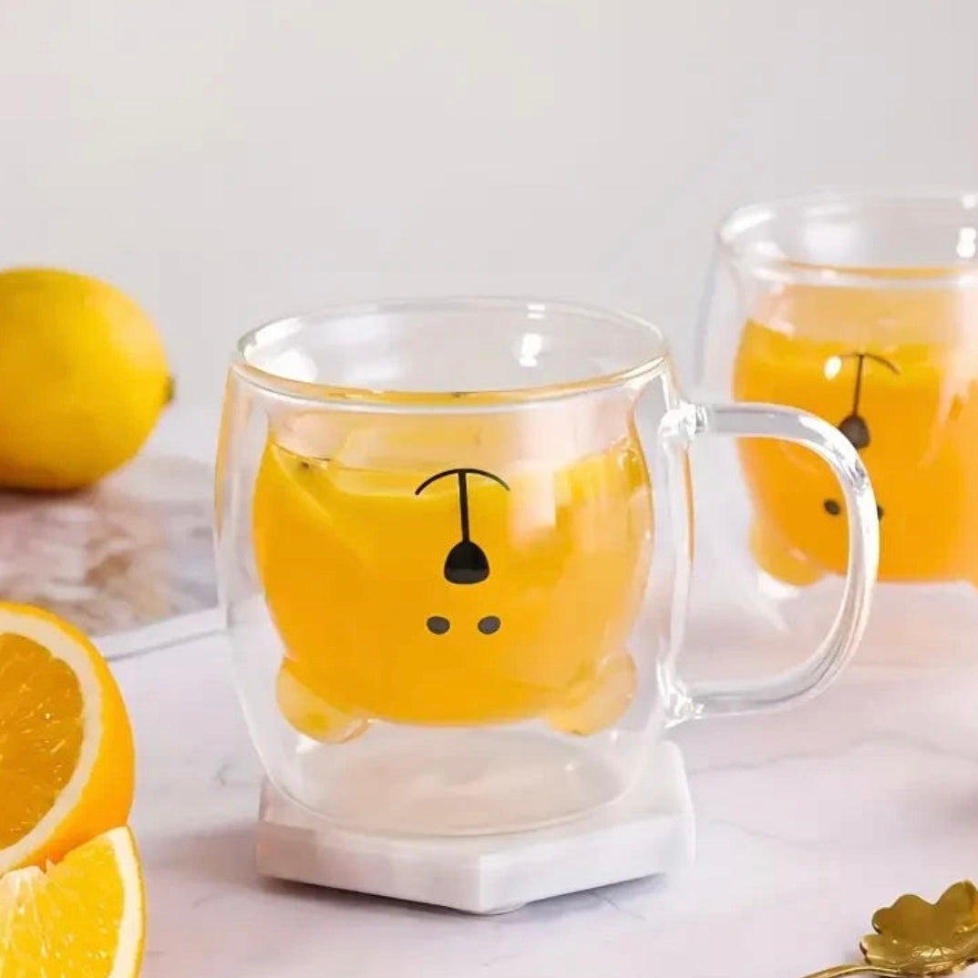 Set 6 cesti cafea pereti dubli sticla termorezistenta Model Ursulet 260 ml coffe