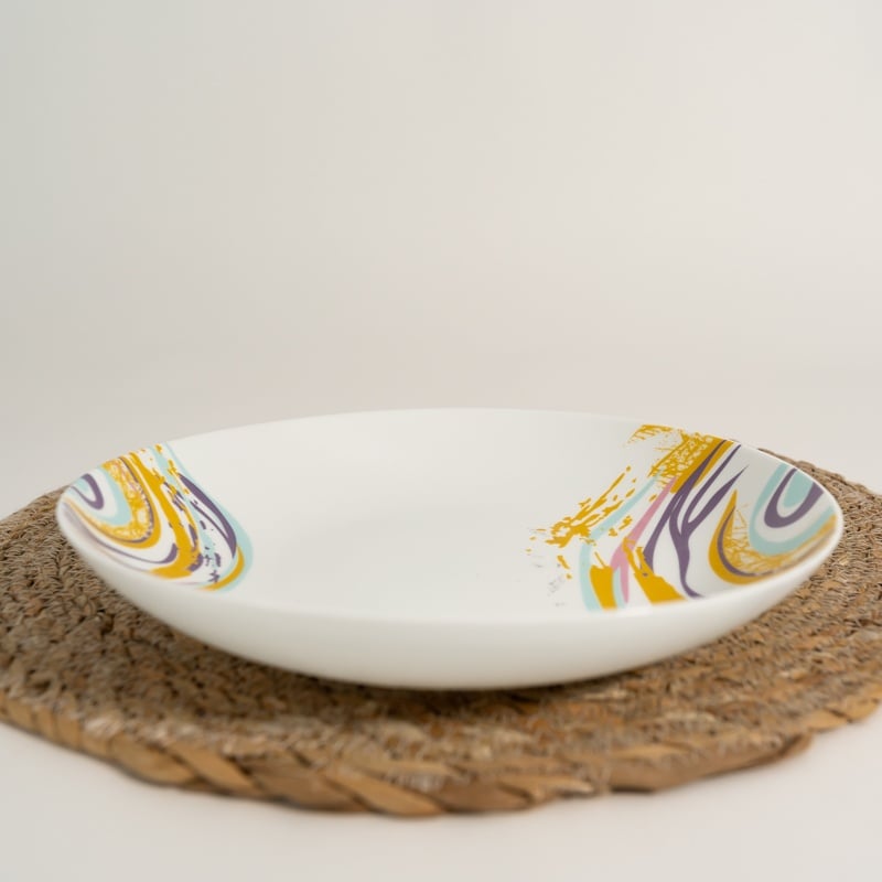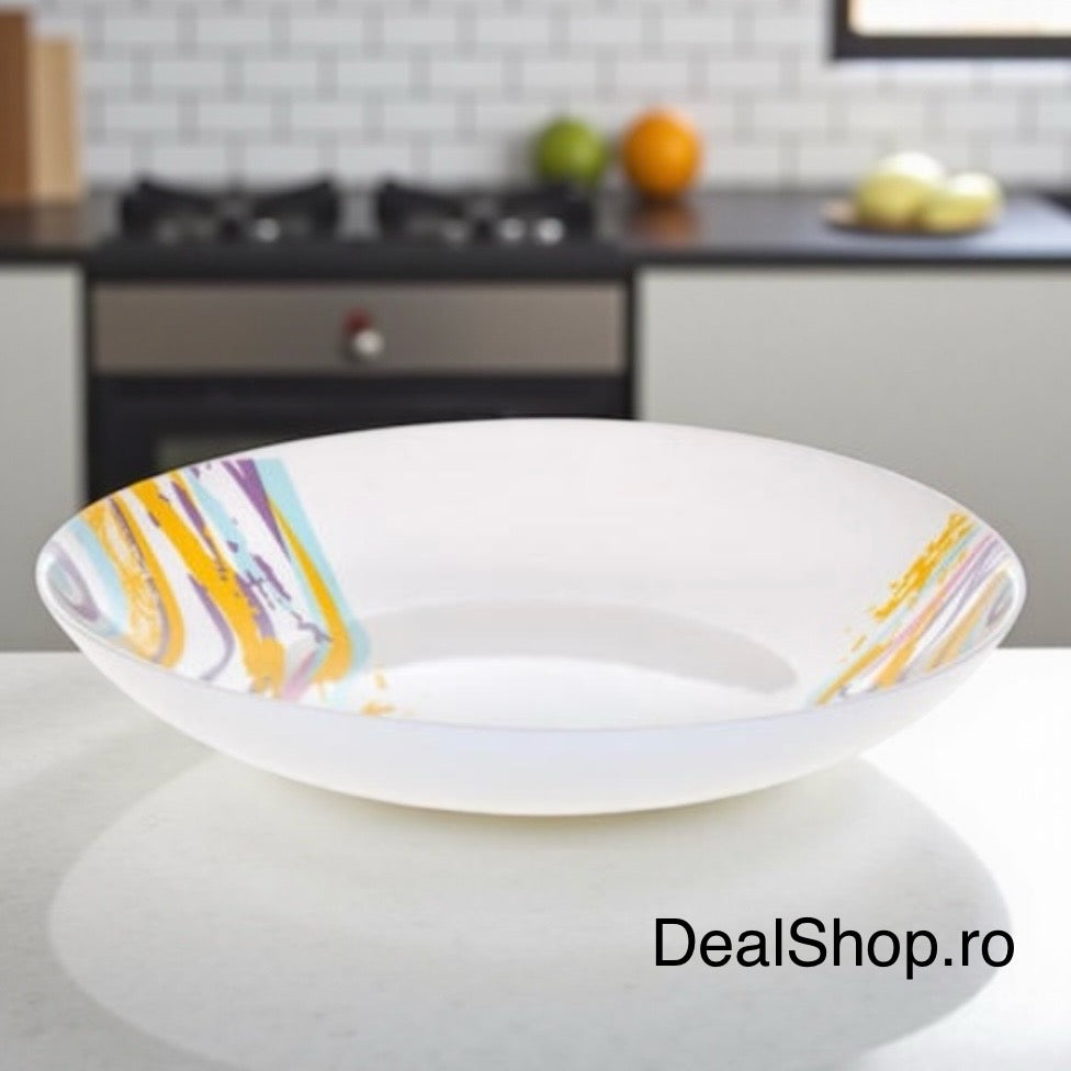 Completează colecția de veselă cu setul de 6 farfurii adânci din opal Spiral, cu diametrul de 23 cm