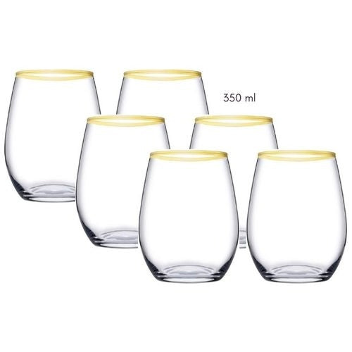 Set 6 Pahare Amber Gold 350 ml – Margine Auriu, Sticlă Premium Eleganță