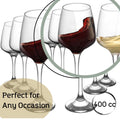 Fabricate din sticlă de înaltă calitate, paharele oferă transparență impecabilă și rezistență în timp. Capacitatea de 400 ml este ideală pentru servirea vinurilor, dar și a băuturilor răcoritoare sau cocktailurilor sofisticate