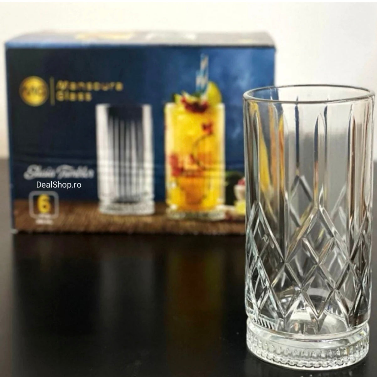 Set 6 pahare din sticla Mansoura Timeless 300 ml Design elegant și durabil Cadoul ideal