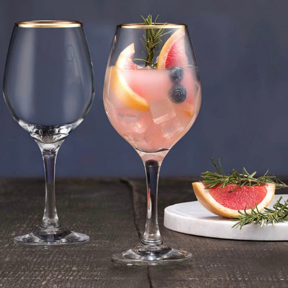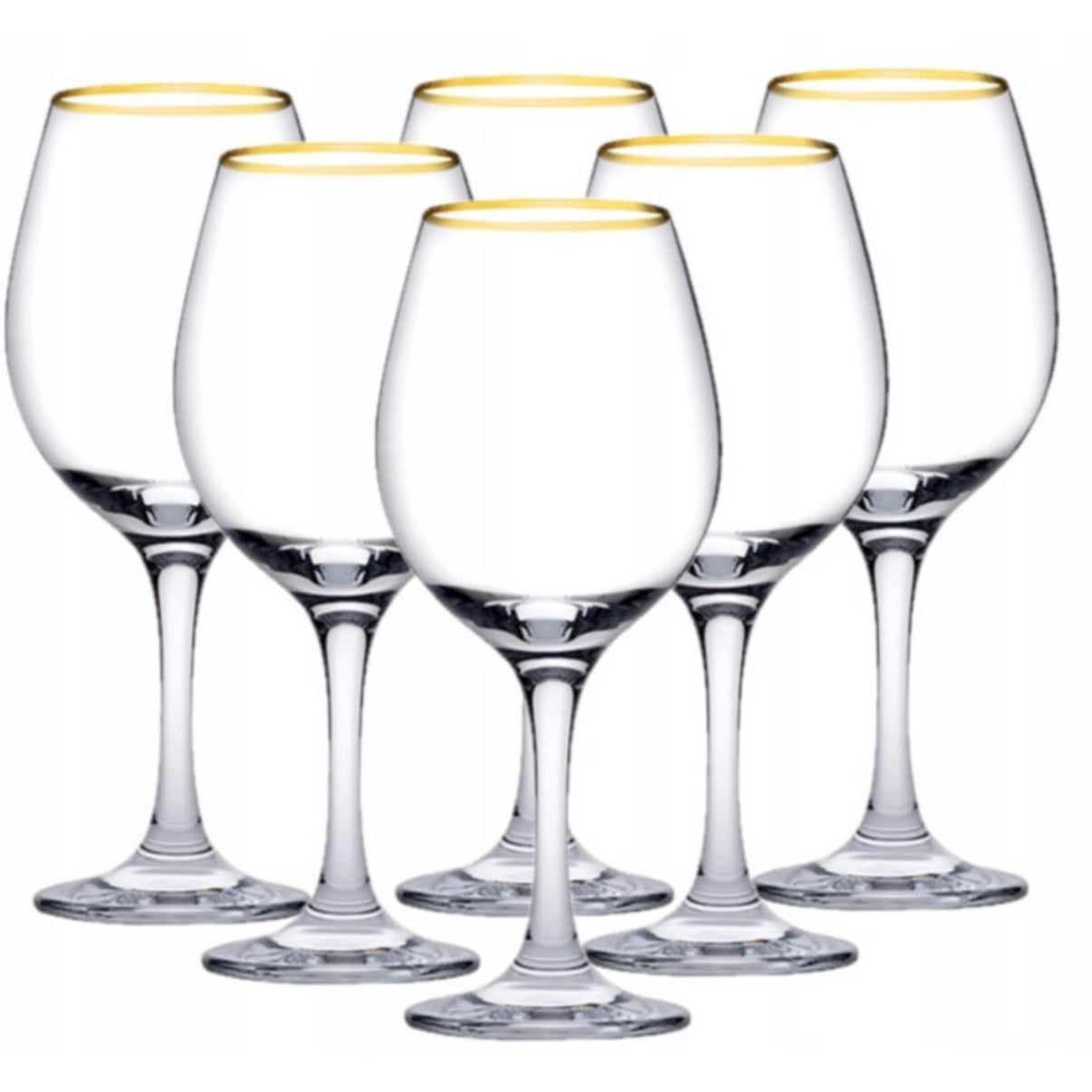 Set 6 Pahare Vin Amber Gold 365 ml – Sticlă premium margine auriu eleganta