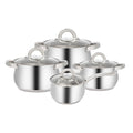 Set de oale din inox premium, format din 4 piese cu diametre 16 cm, 18 cm, 20 cm si 24 cm, fiecare cu capac din sticla termorezistenta