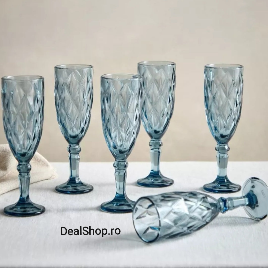 Set de 12 pahare pentru sampanie 165 ml blue Eleganta pt Terasa și Evenimente CADOUL PERFECT