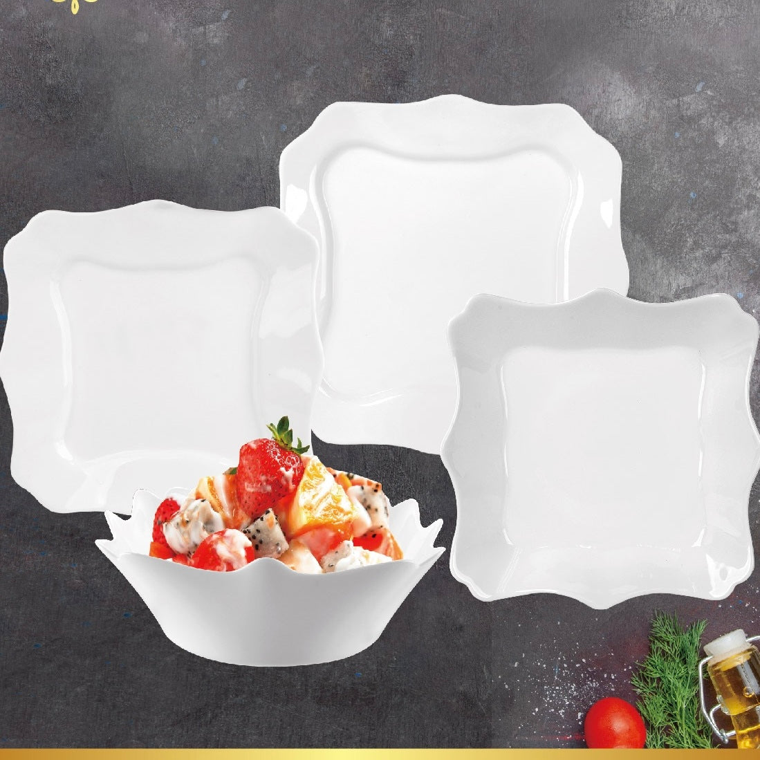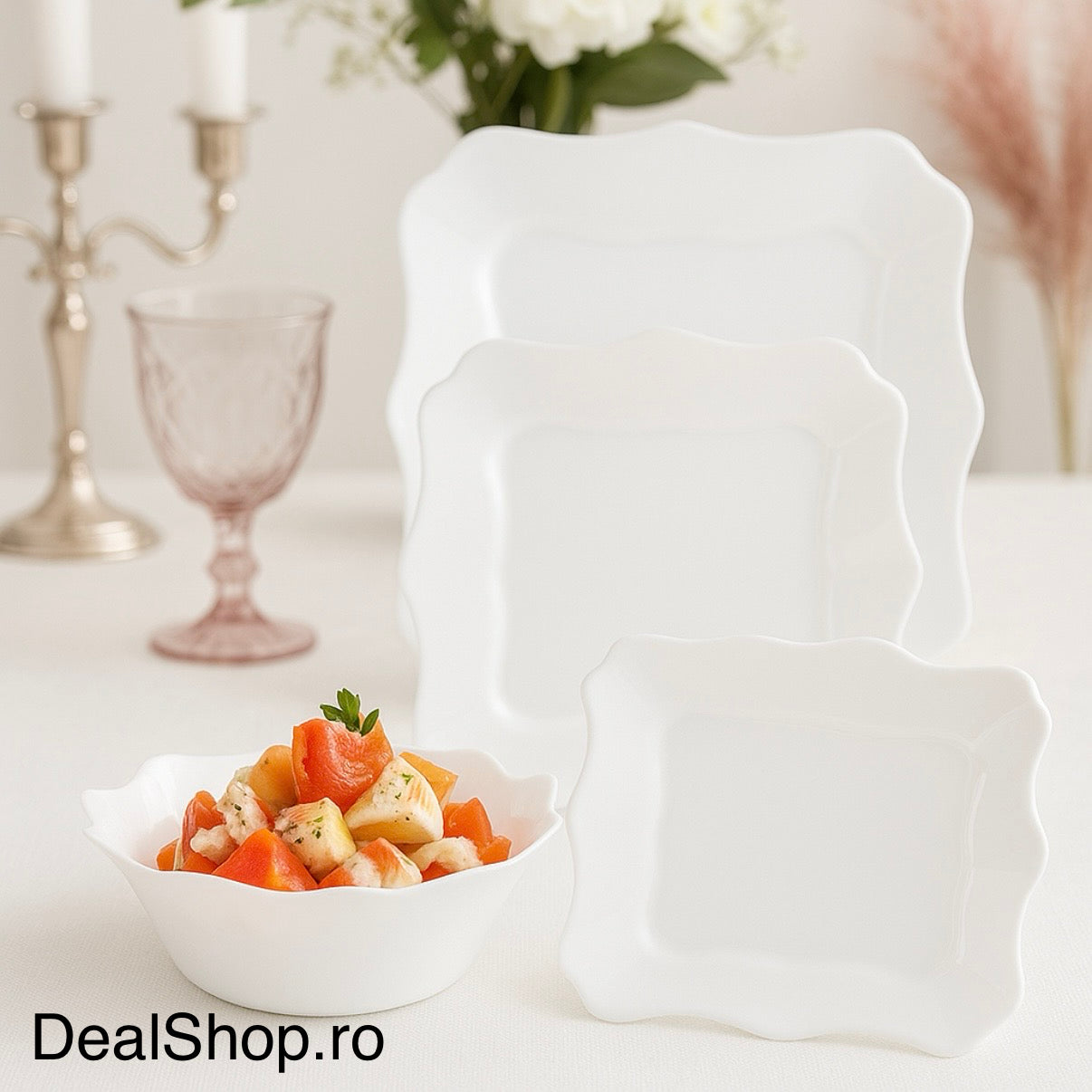 Serviciu de masă opal termorezistent 19 Piese Lacy-White – Farfurii Pătrate Albe pentru 6 persoane