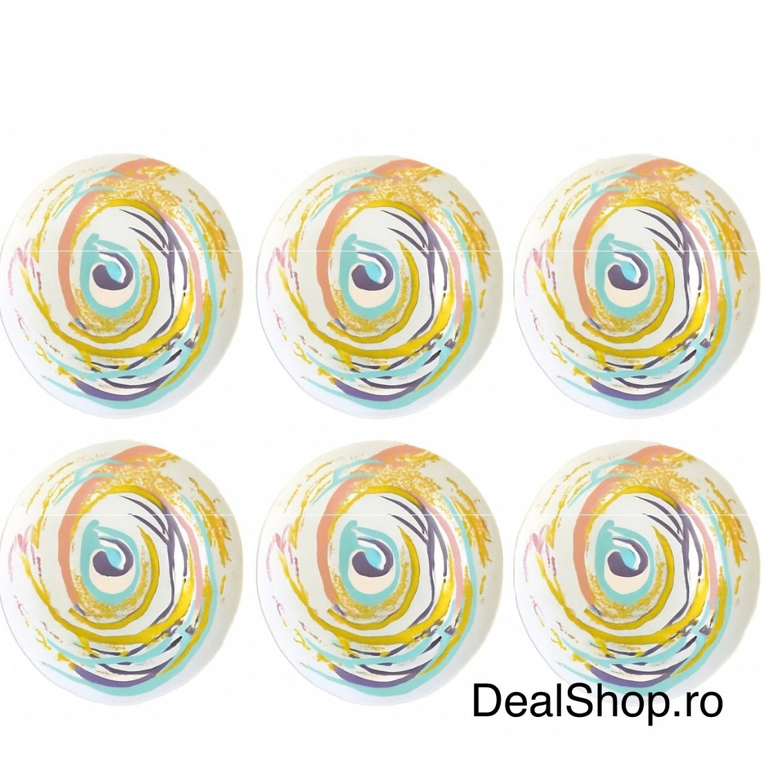 Alege eleganța și rezistența pentru masa ta cu acest set de 6 farfurii întinse din opal, model Spiral, cu diametrul de 26,5 cm