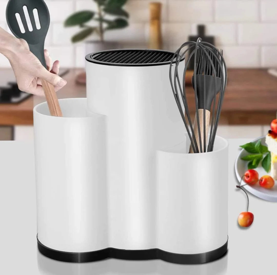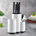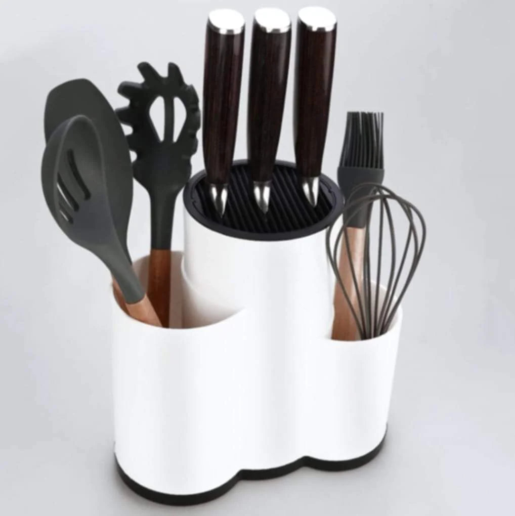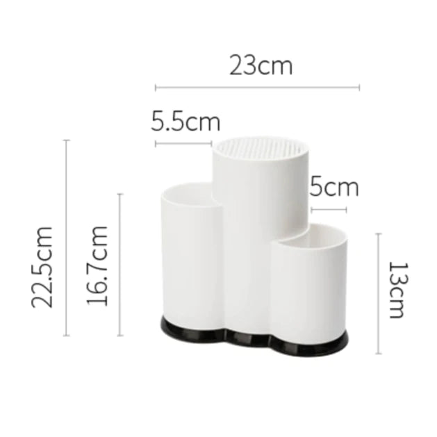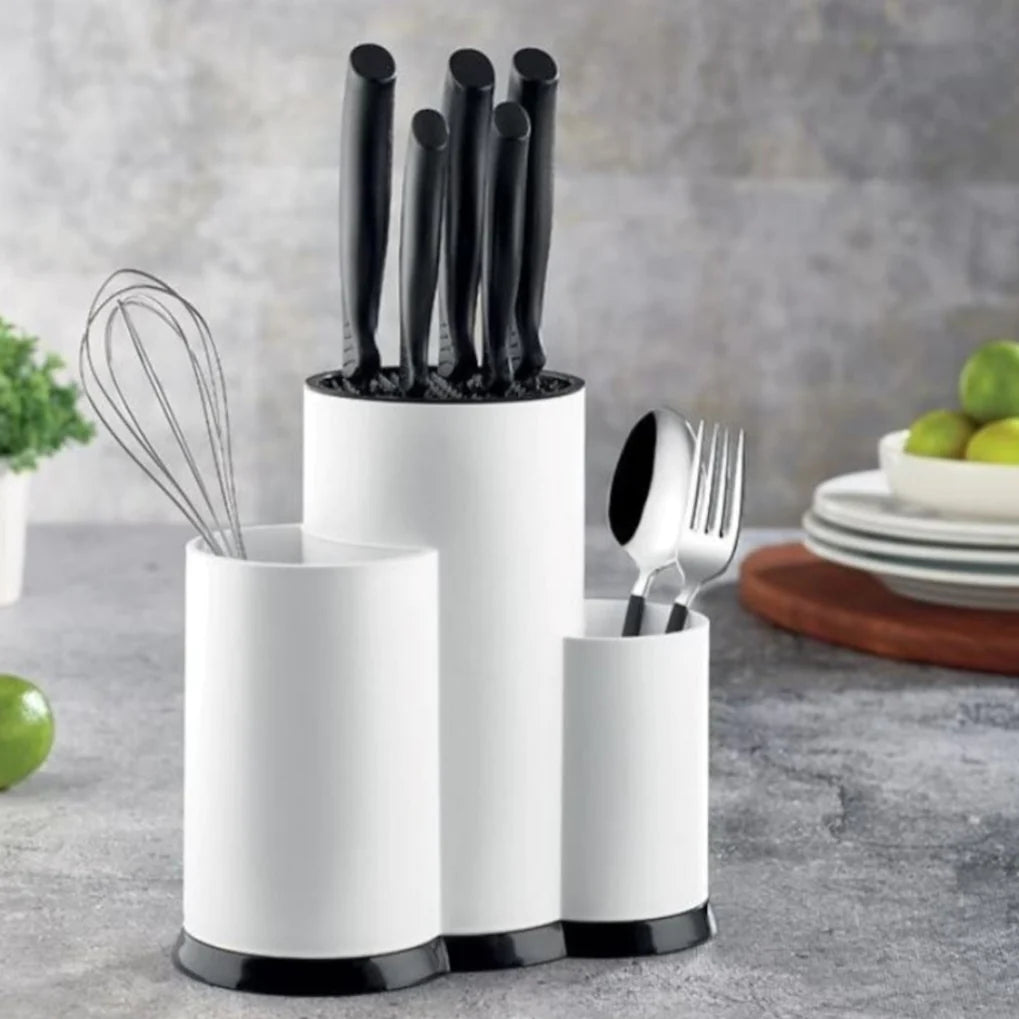 Optează pentru organizare și eficiență în bucătăria ta cu suportul nostru pentru cutite și ustensile, confecționat din plastic alb