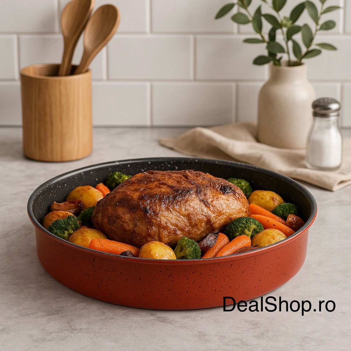 Tava rotunda pentru cuptor, acoperire ceramica, dimensiune 35 x 7 cm, Heinner Anca