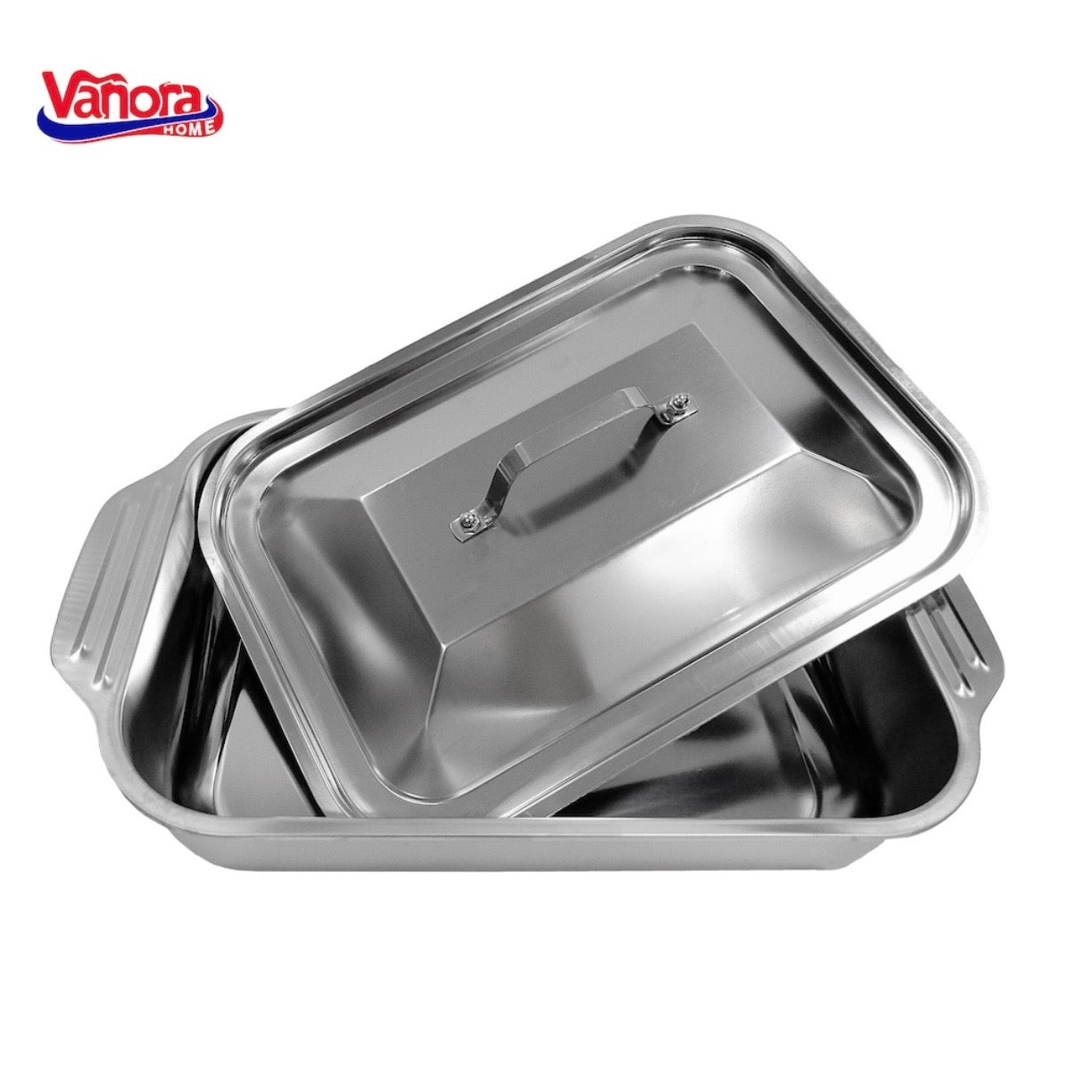 Tava inox cu capac Vanora Home Zira, 36.5 x 22 x 7 cm
